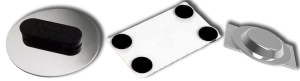 Ideales para telas delicadas que no se quieren perforar (como cuero o seda) o para pins que se cambian con frecuencia. No dejan agujero y son muy discretos. Consisten en un imán pegado a la parte posterior del pin y otro imán que se coloca detrás de la tela.