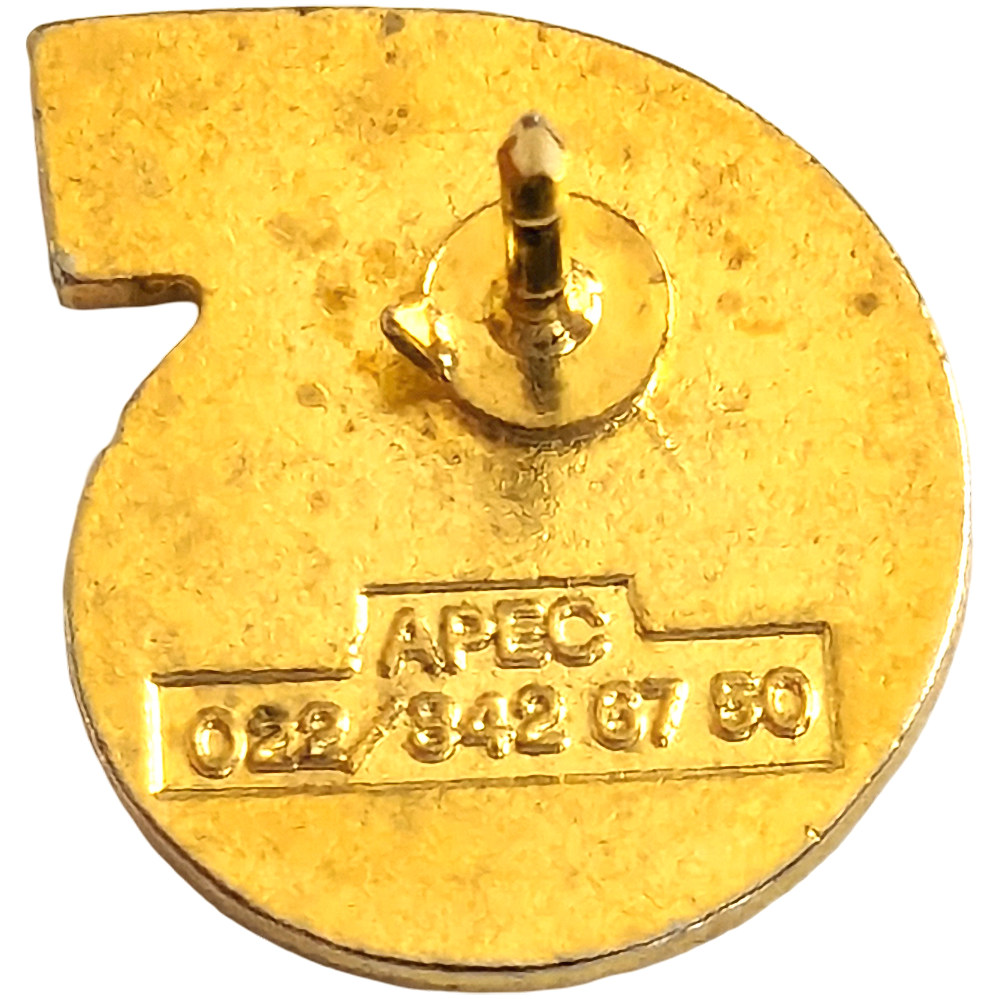 Este pin presenta la cruz roja y la media luna rojas sobre un globo terrestre dorado con borde rojo.