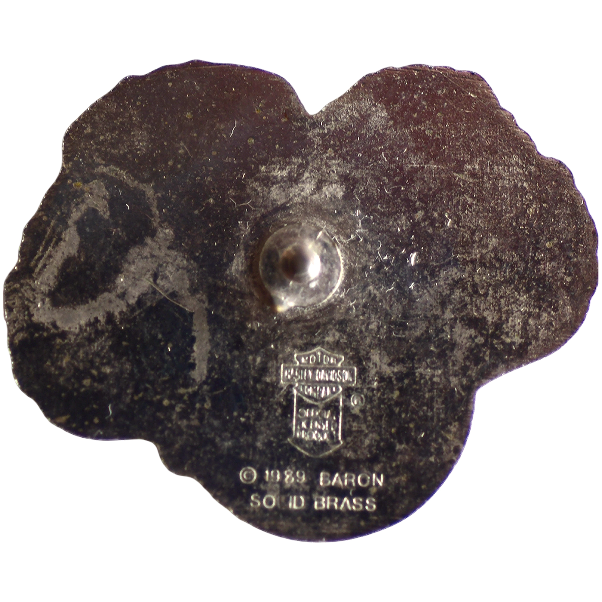 Este pin presenta el logotipo Harley-Davidson en círculo naranja, flanqueado por cabezas de águila y alas; latón Baron.