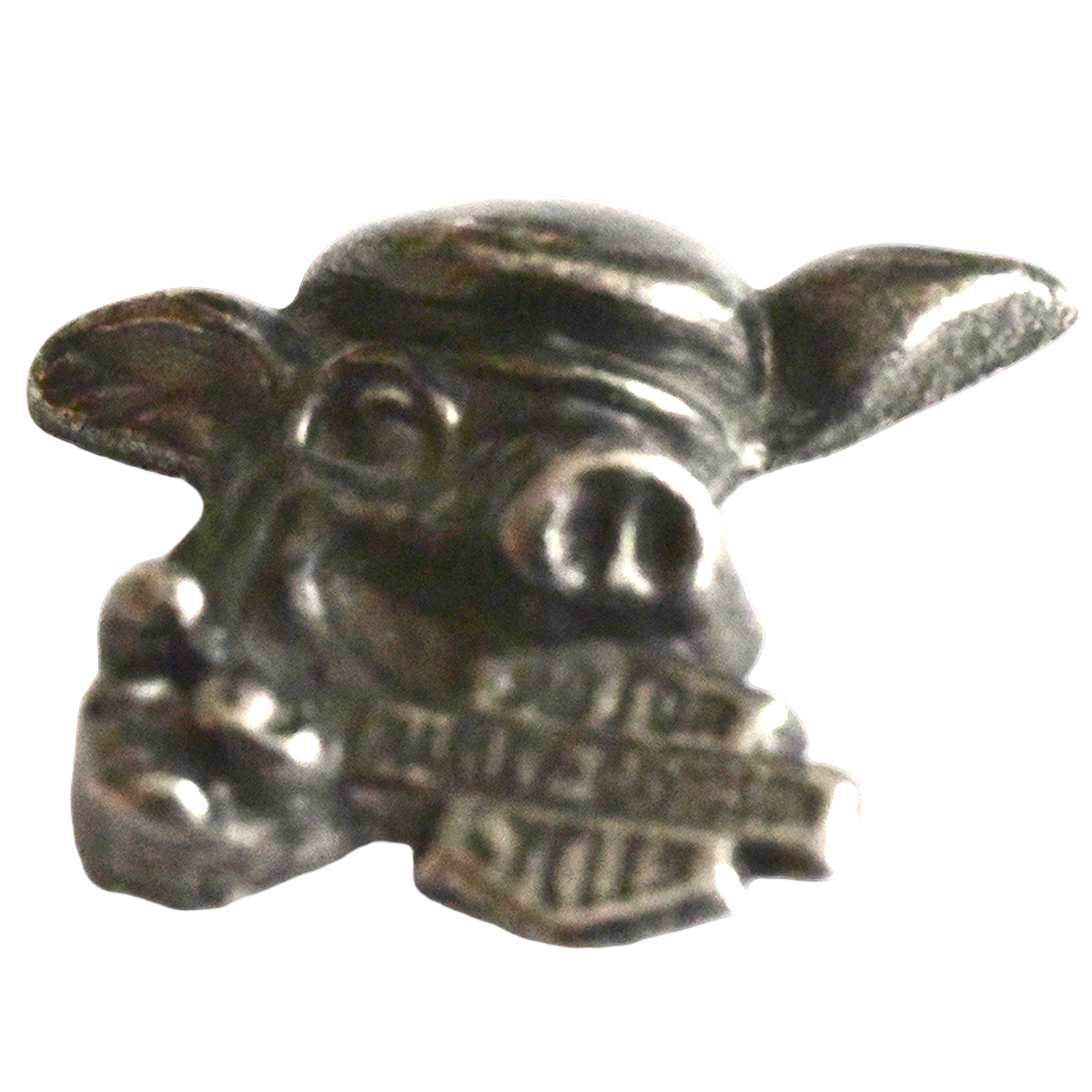 Este pin presenta la cabeza de un cerdo en relieve con el escudo y texto de Harley-Davidson en metal envejecido.