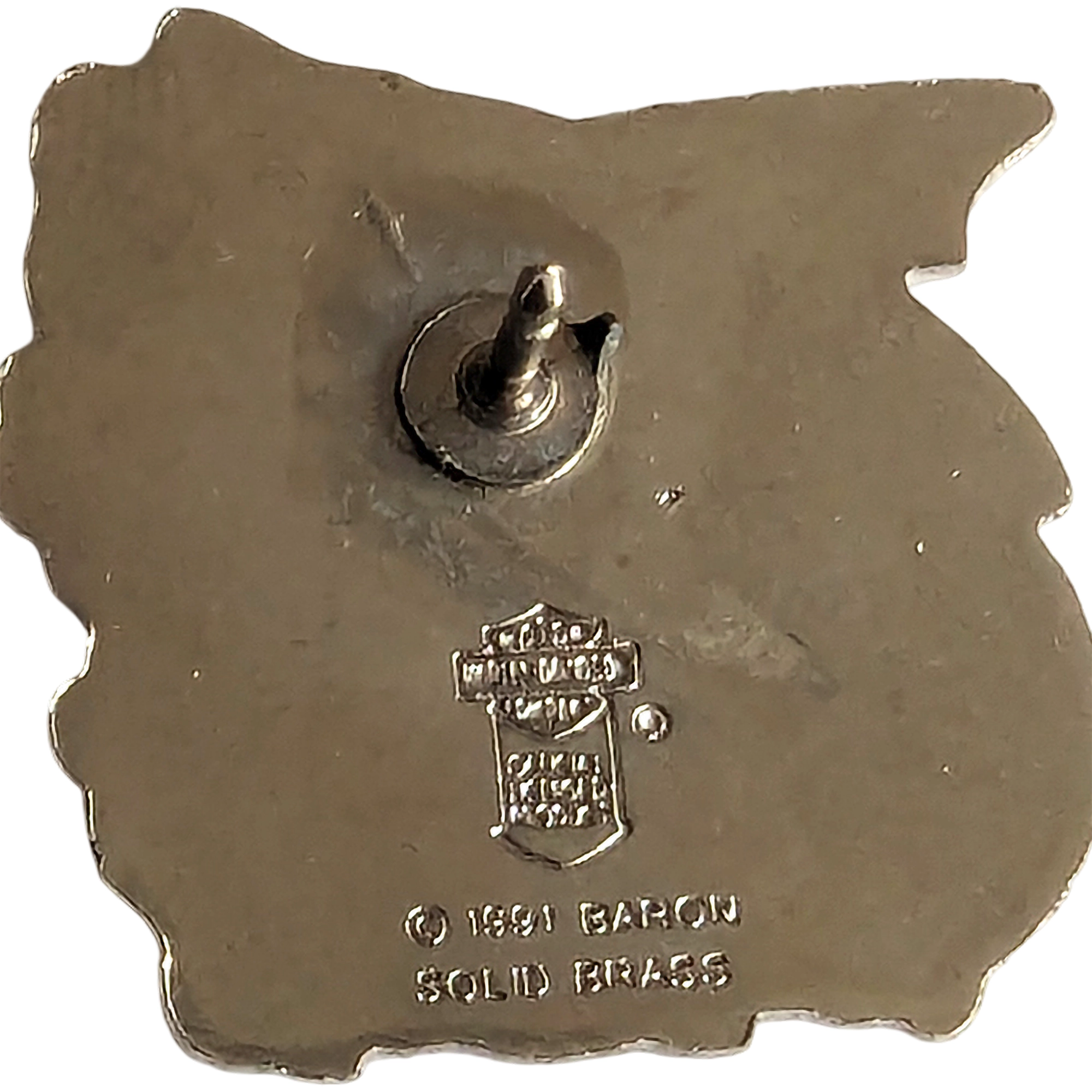 Este pin presenta el escudo Harley-Davidson en naranja con un dragón alado en metal envejecido.