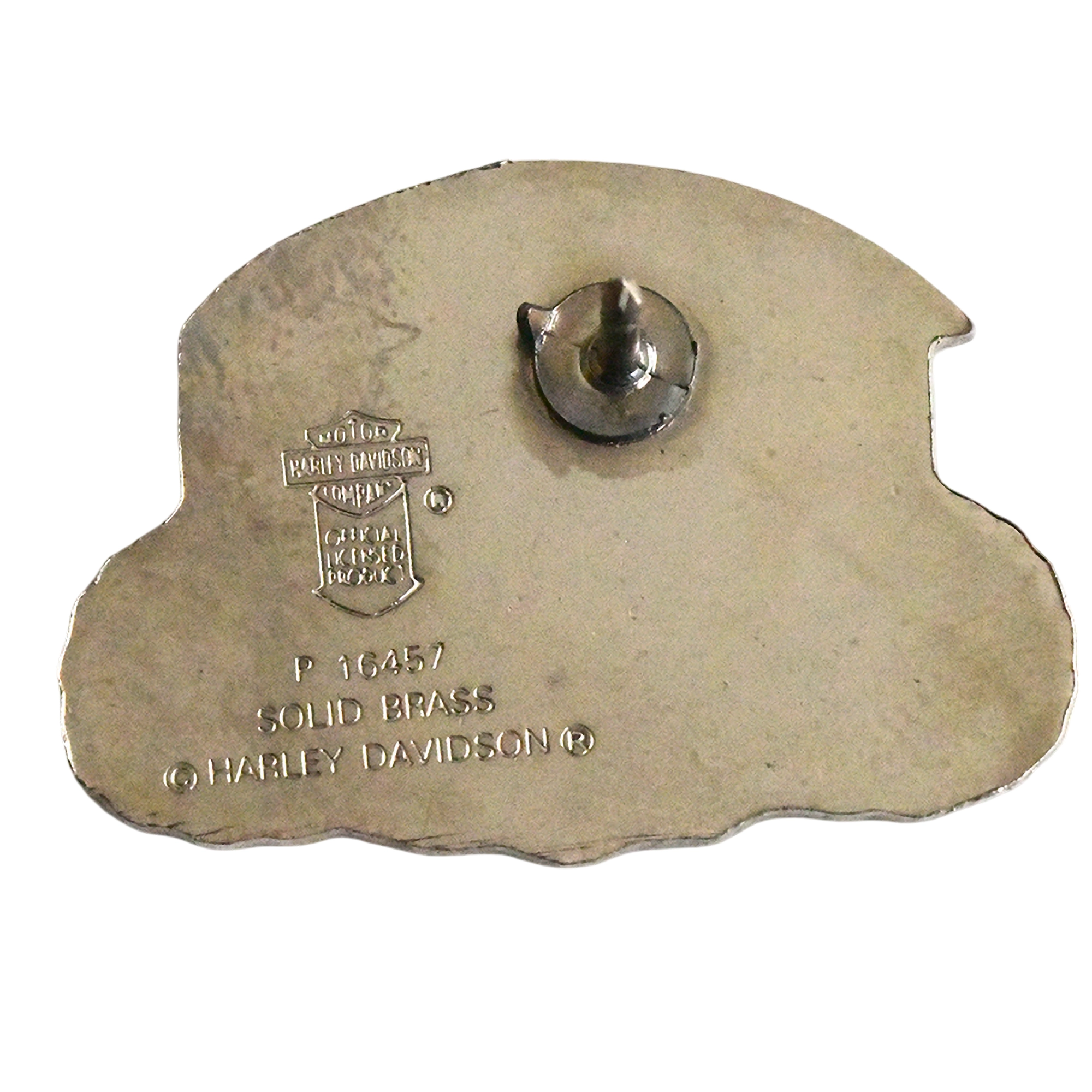 Este pin presenta un águila blanca con pico amarillo y alas sobre el escudo Bar & Shield naranja y las letras HD azules.