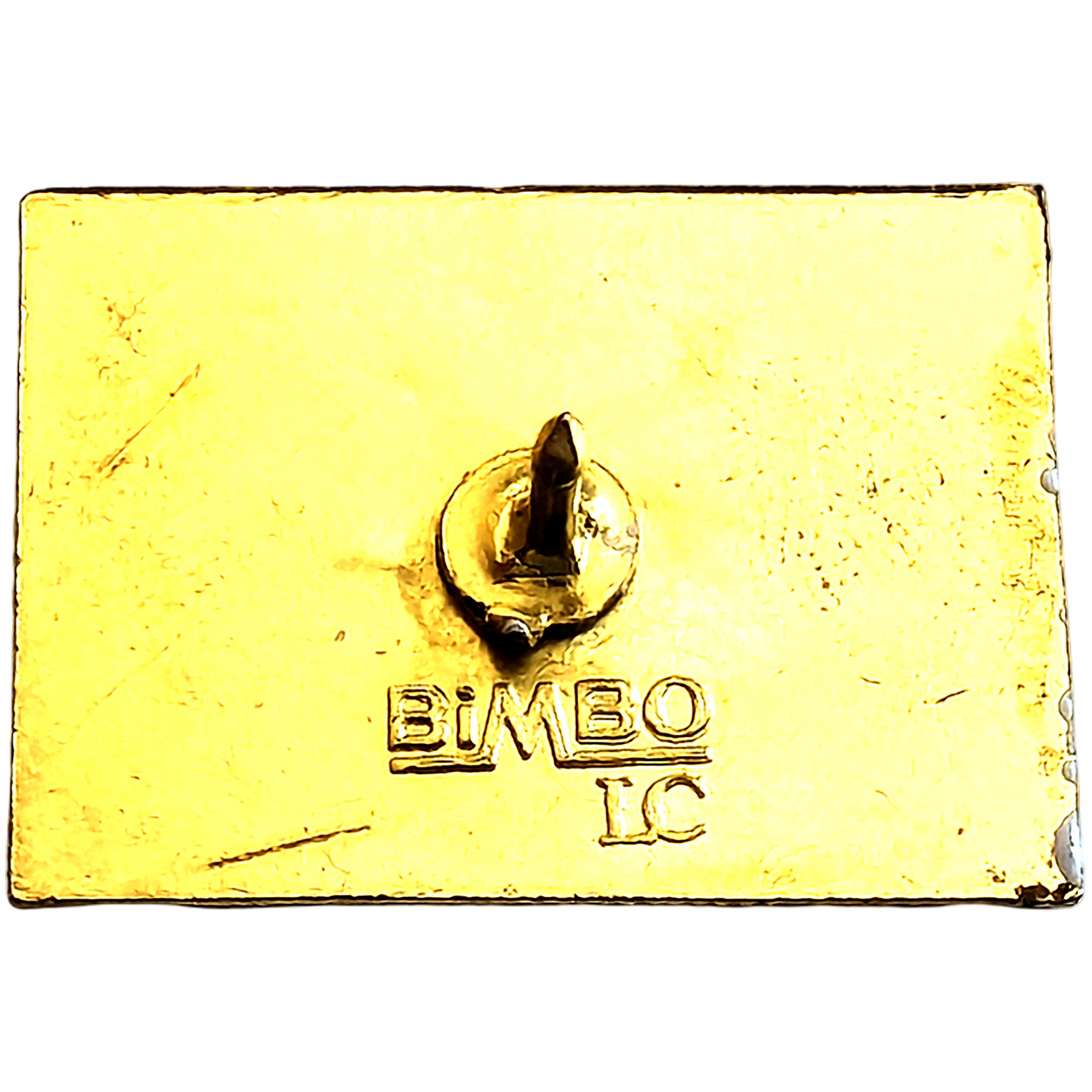 Este pin presenta un rostro femenino estilo Art déco en rectángulo, fondo negro y dorado, labios rojos y lunar.