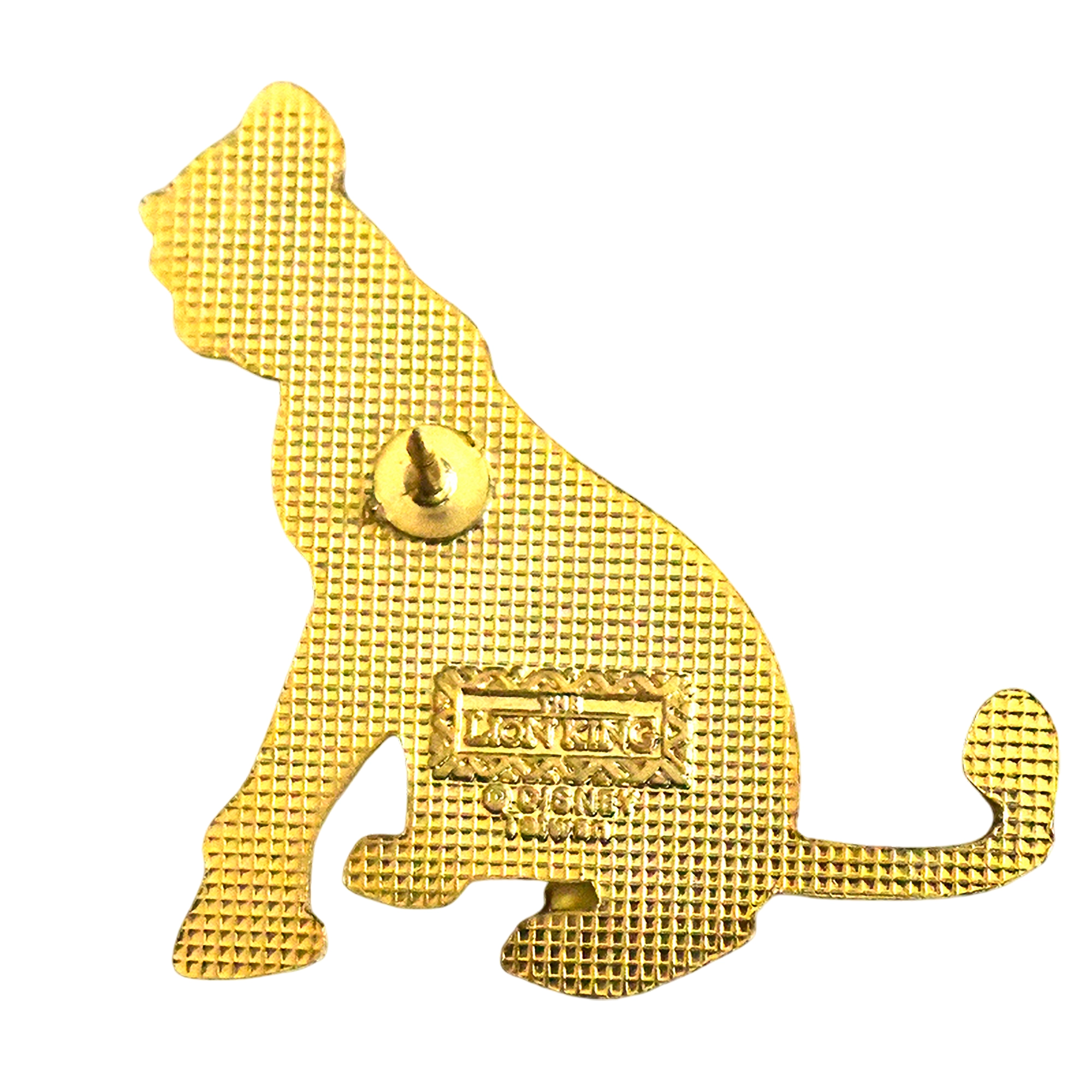 Este pin presenta a Nala, la leona juvenil de El Rey León, sentada de perfil con detalles en dorado.