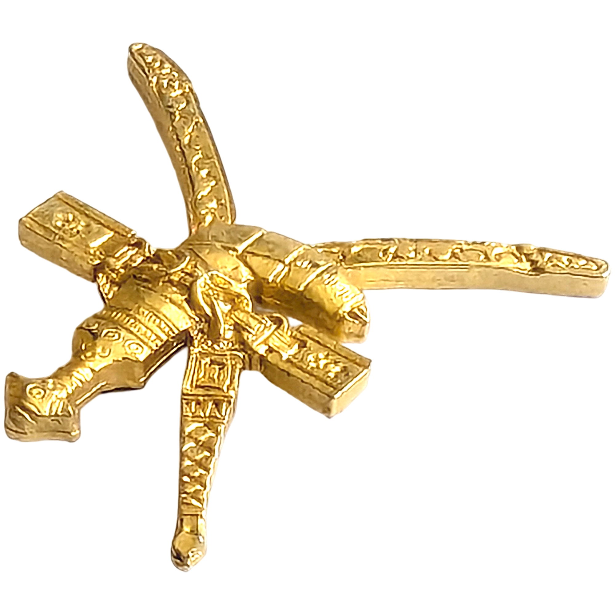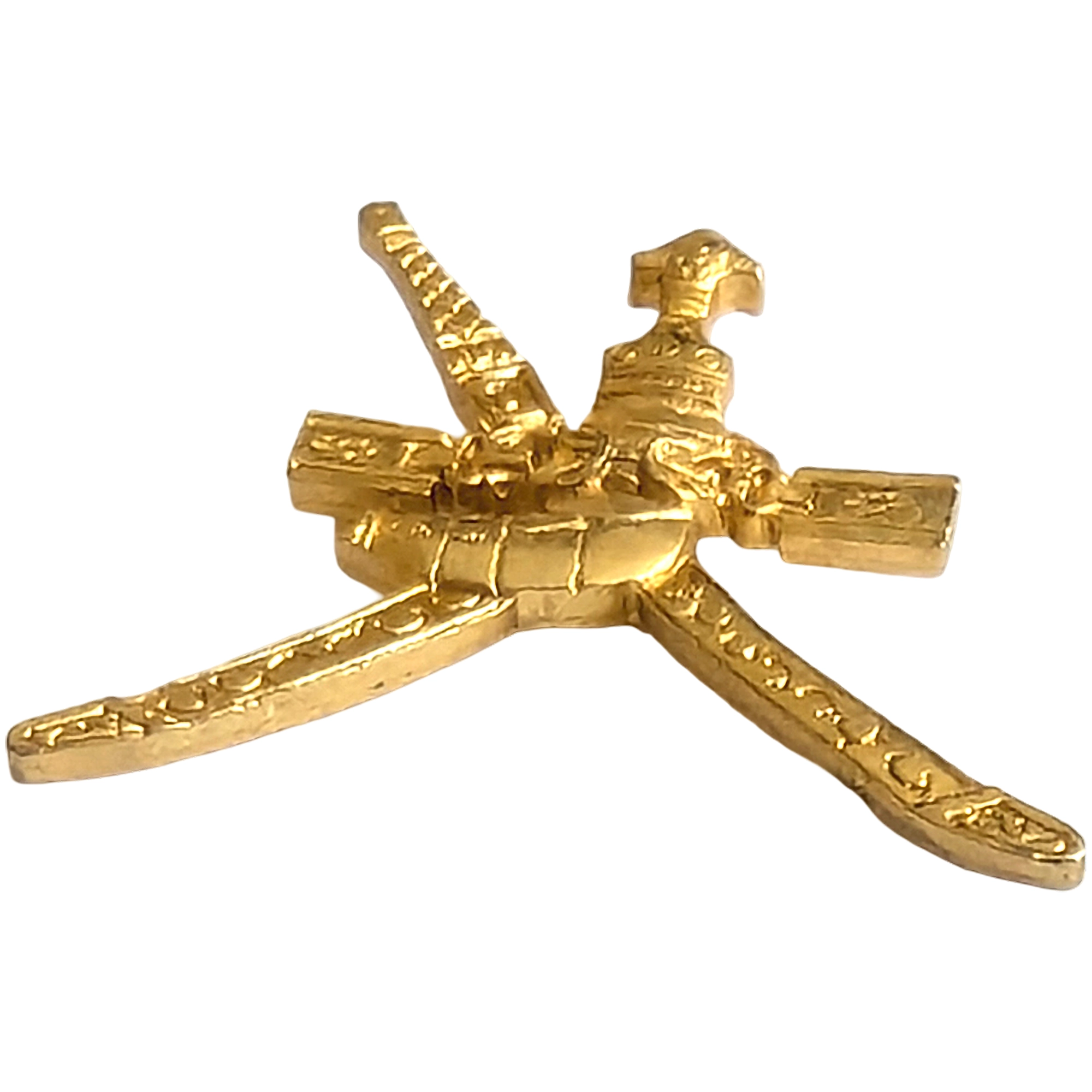 Este pin presenta el khanjar omaní con funda y dos espadas cruzadas, acabado dorado, recuerdo Expo 92 Sevilla