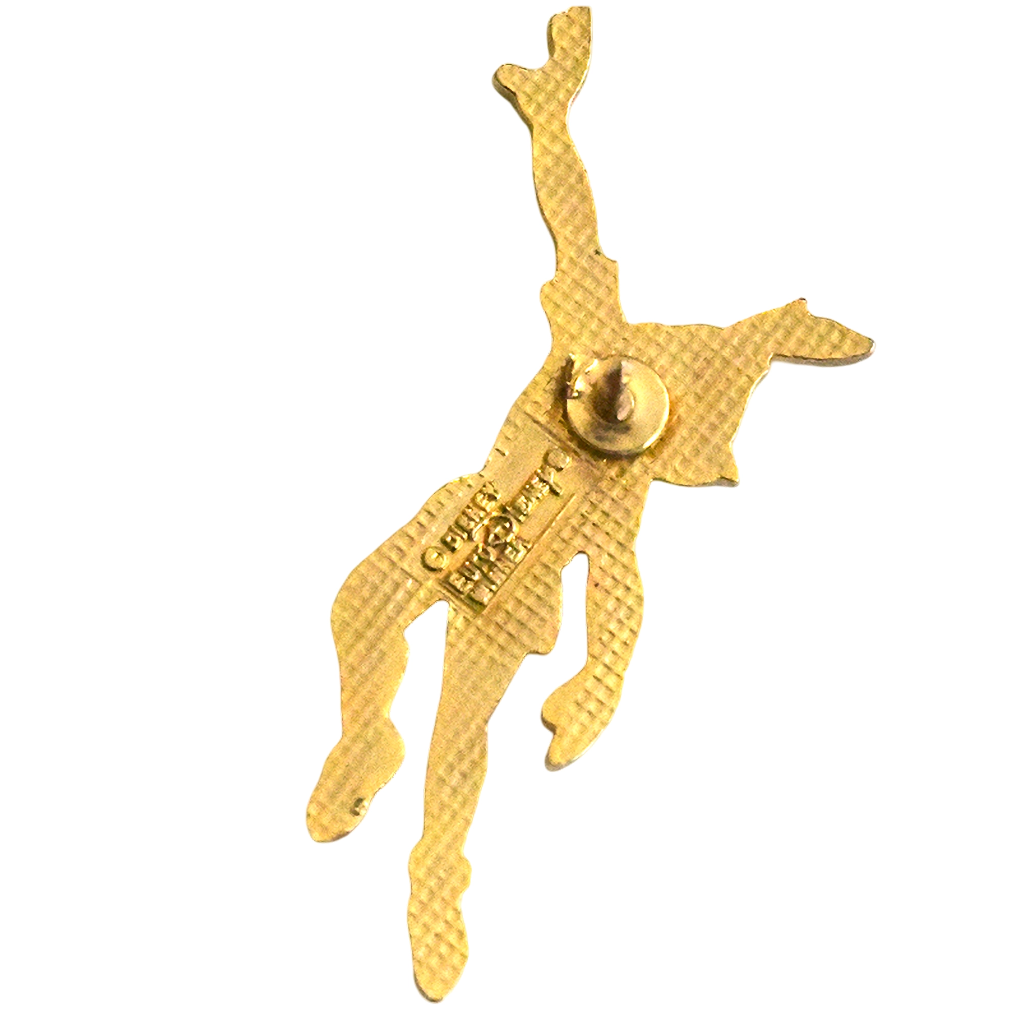 Este pin presenta a Peter Pan con gorro y pluma, en pose de vuelo; esmalte verde y contornos dorados. Disneyland París