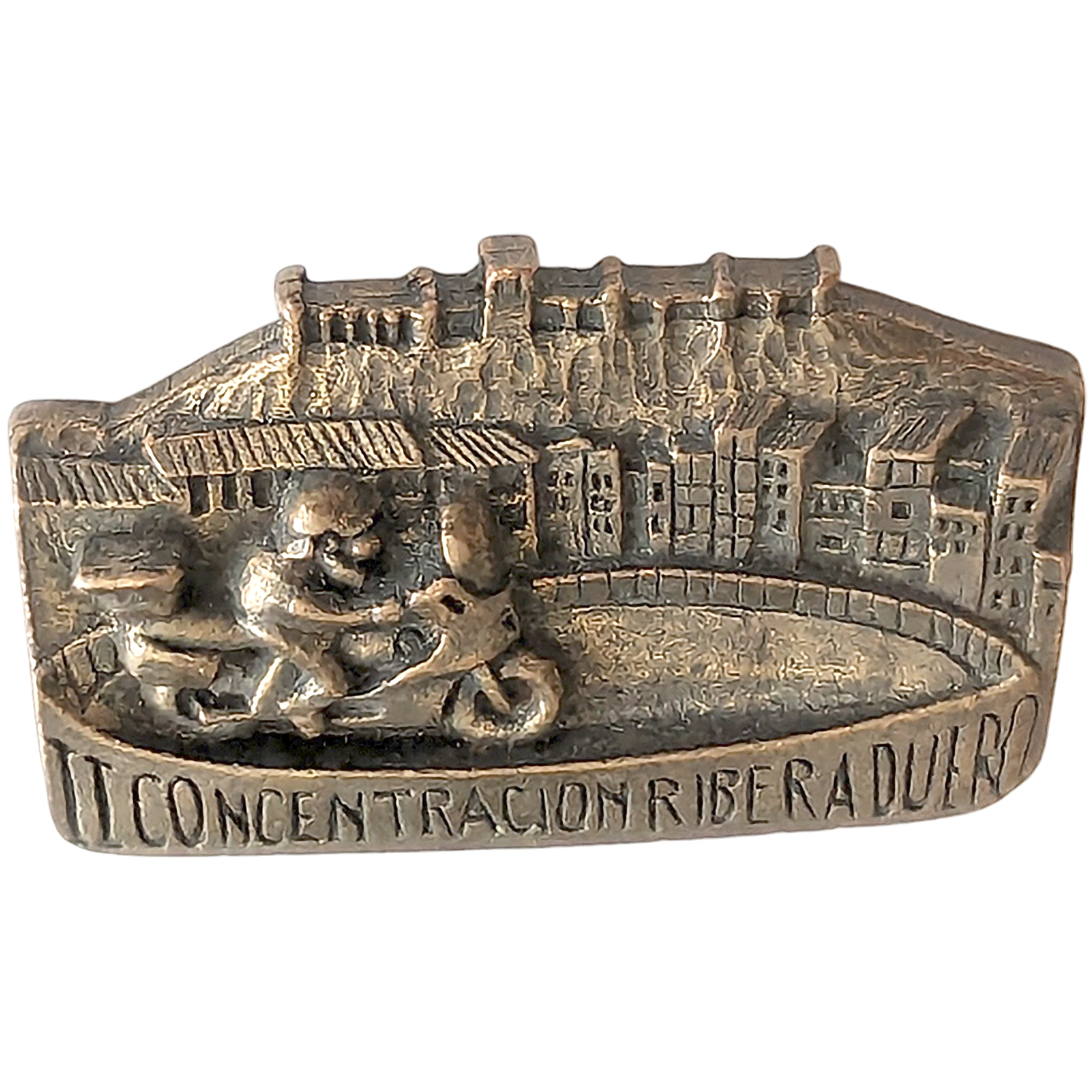 Este pin presenta una moto con piloto y acompañante, fondo de ciudad y la inscripción 'I CONCENTRACION RIBERA DUERO'.