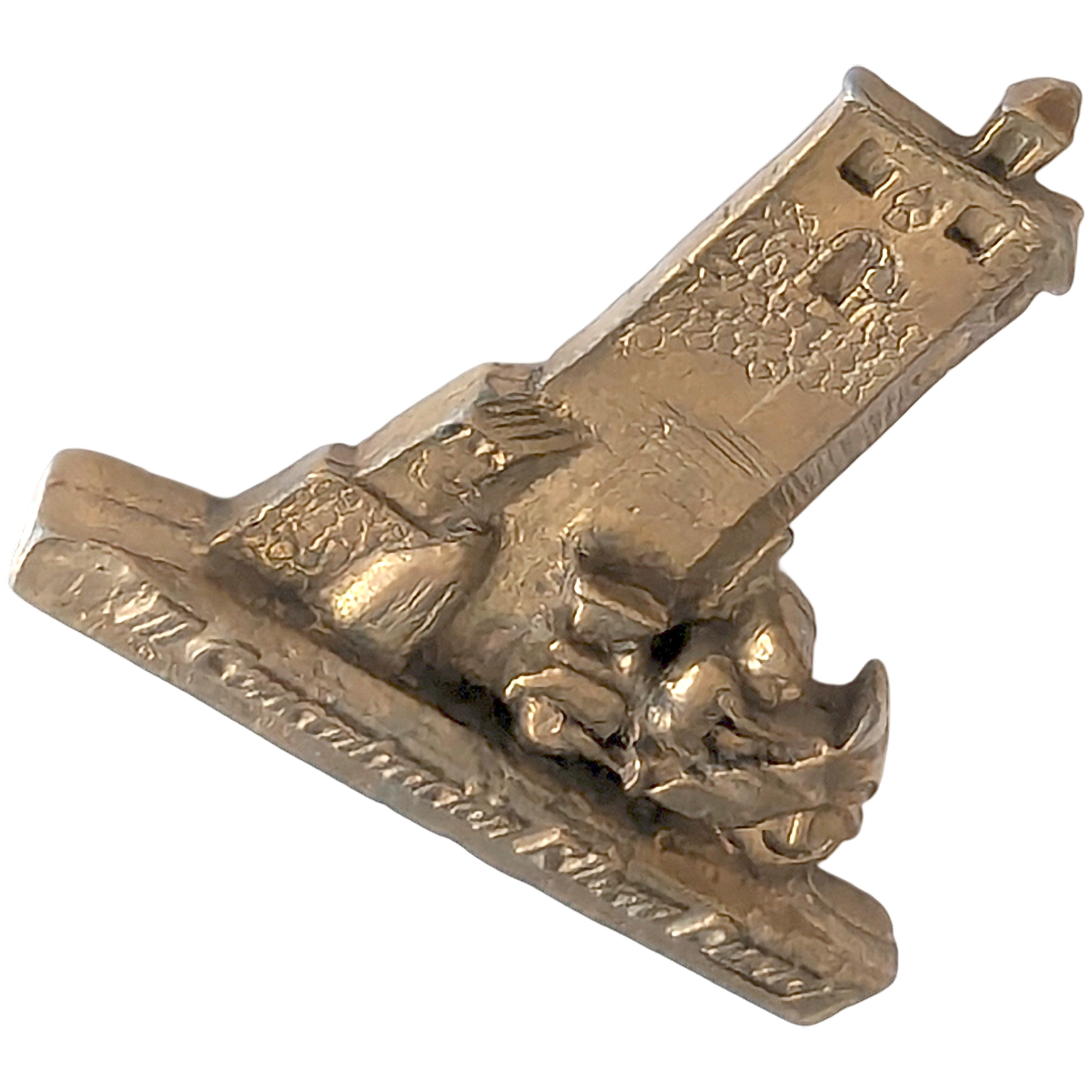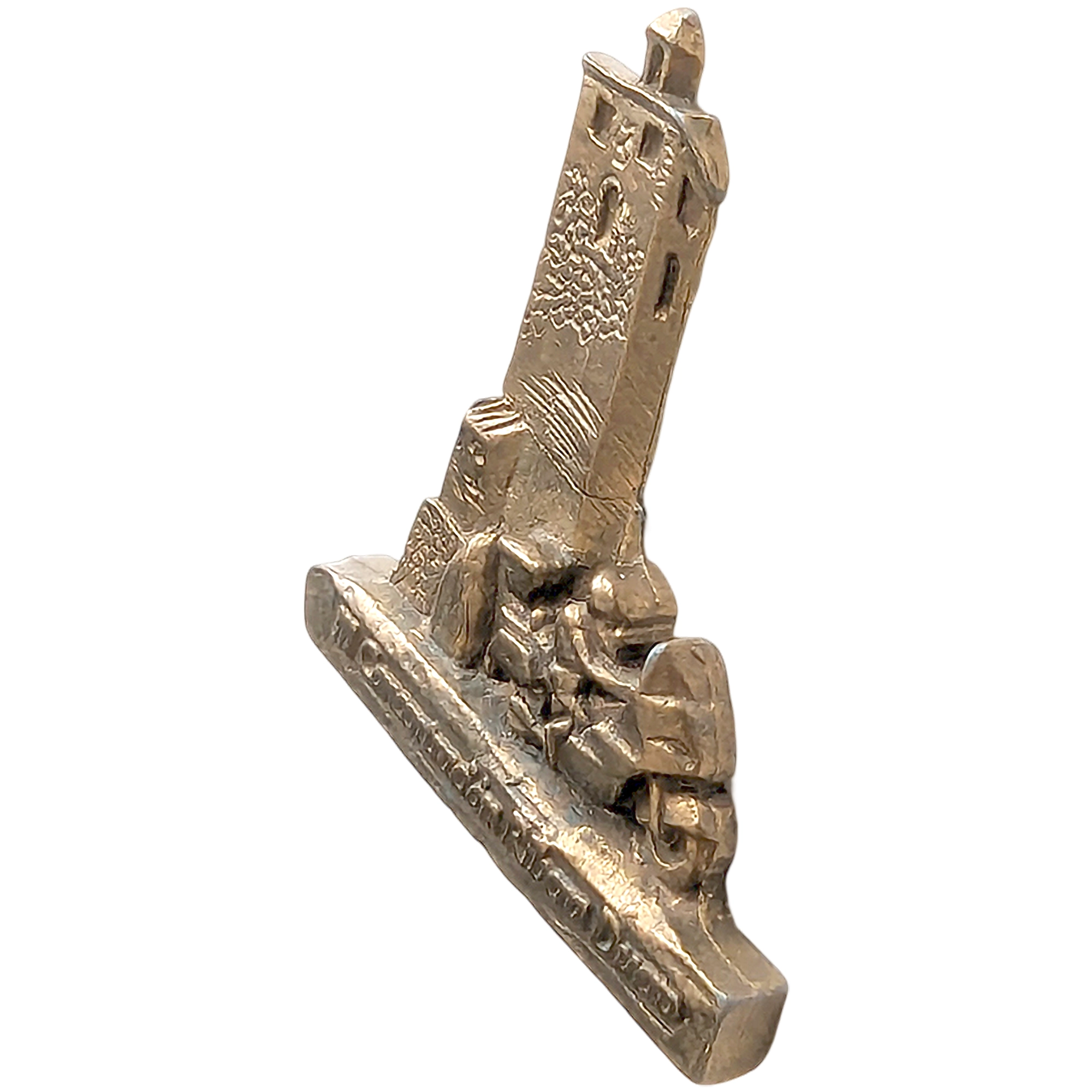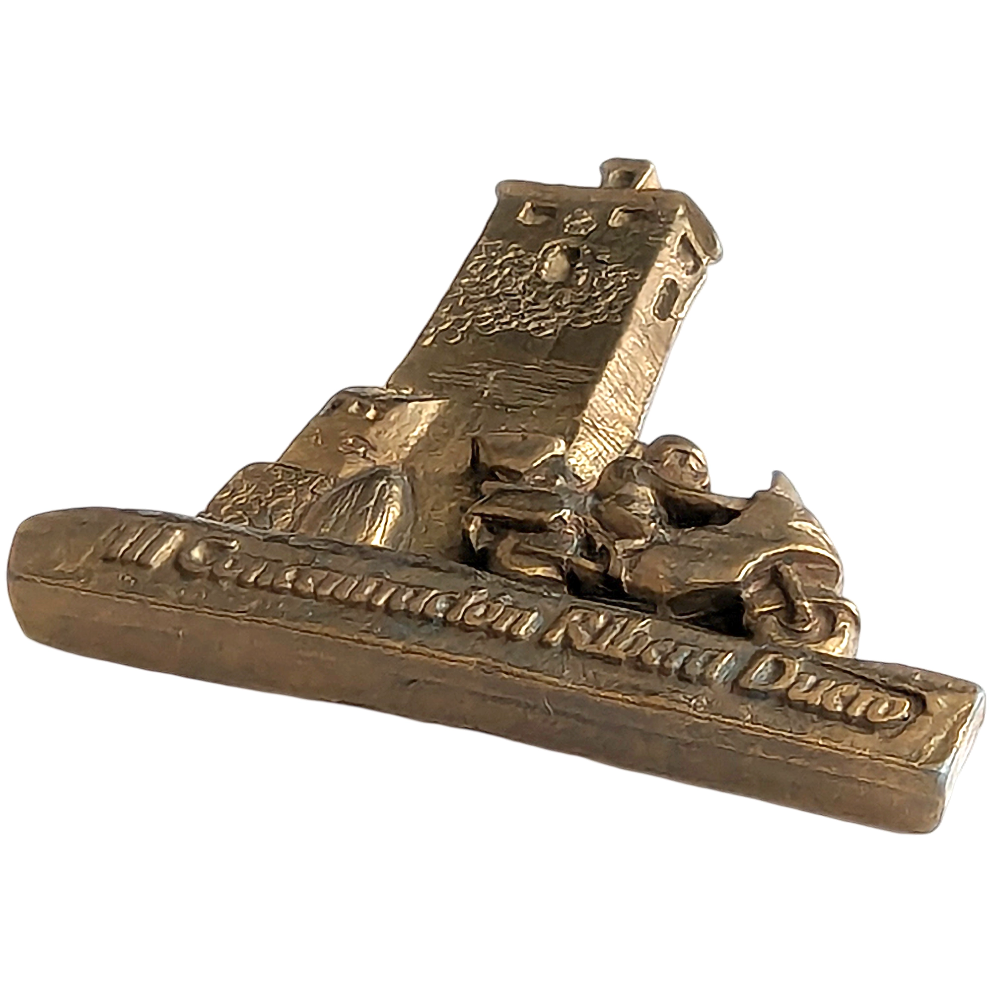 Este pin presenta la inscripción III Concentración Ribera Diego, torre en relieve y motorista con moto, acabado en metal