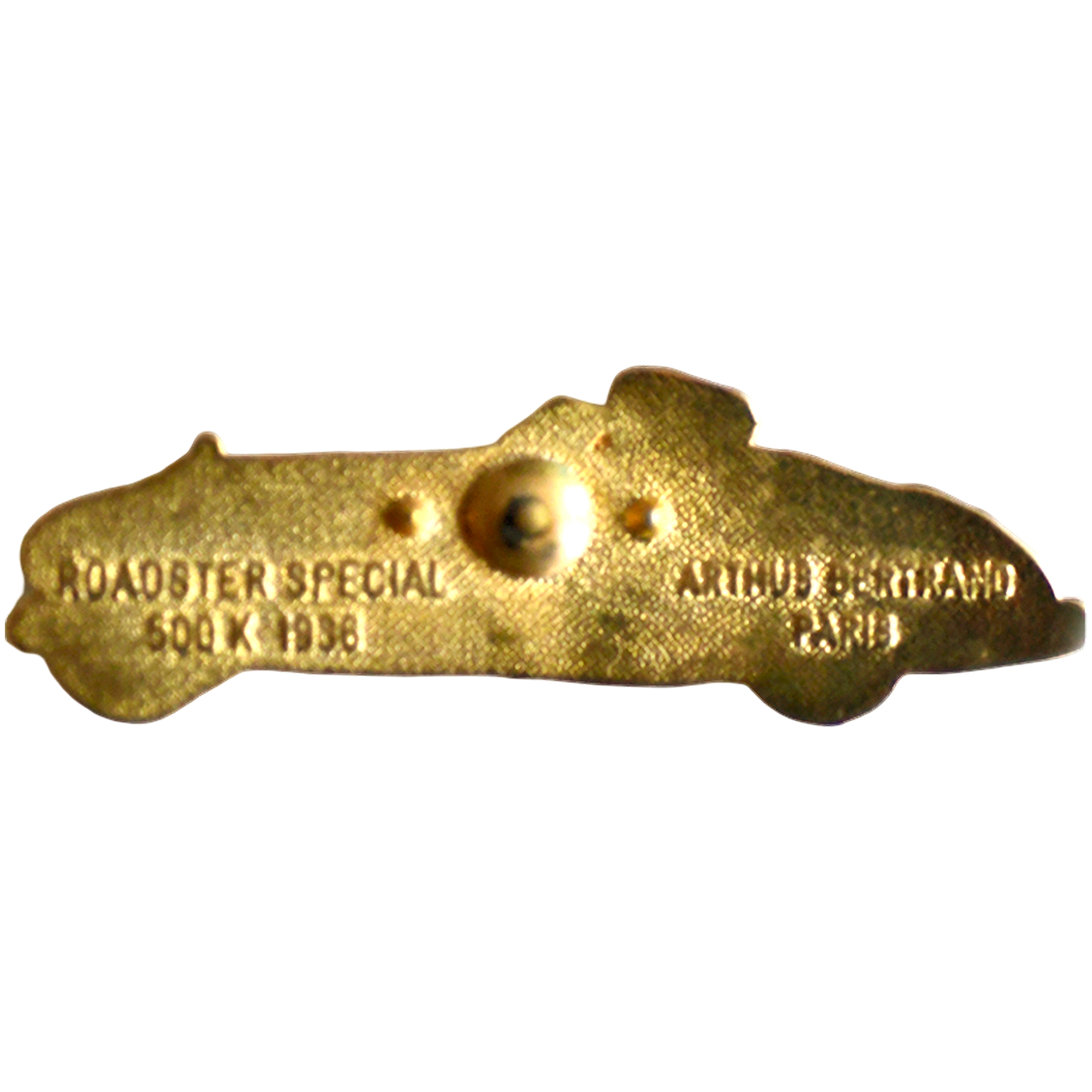 Este pin presenta un coche descapotable clásico negro con dos ocupantes, líneas art déco y detalles dorados.