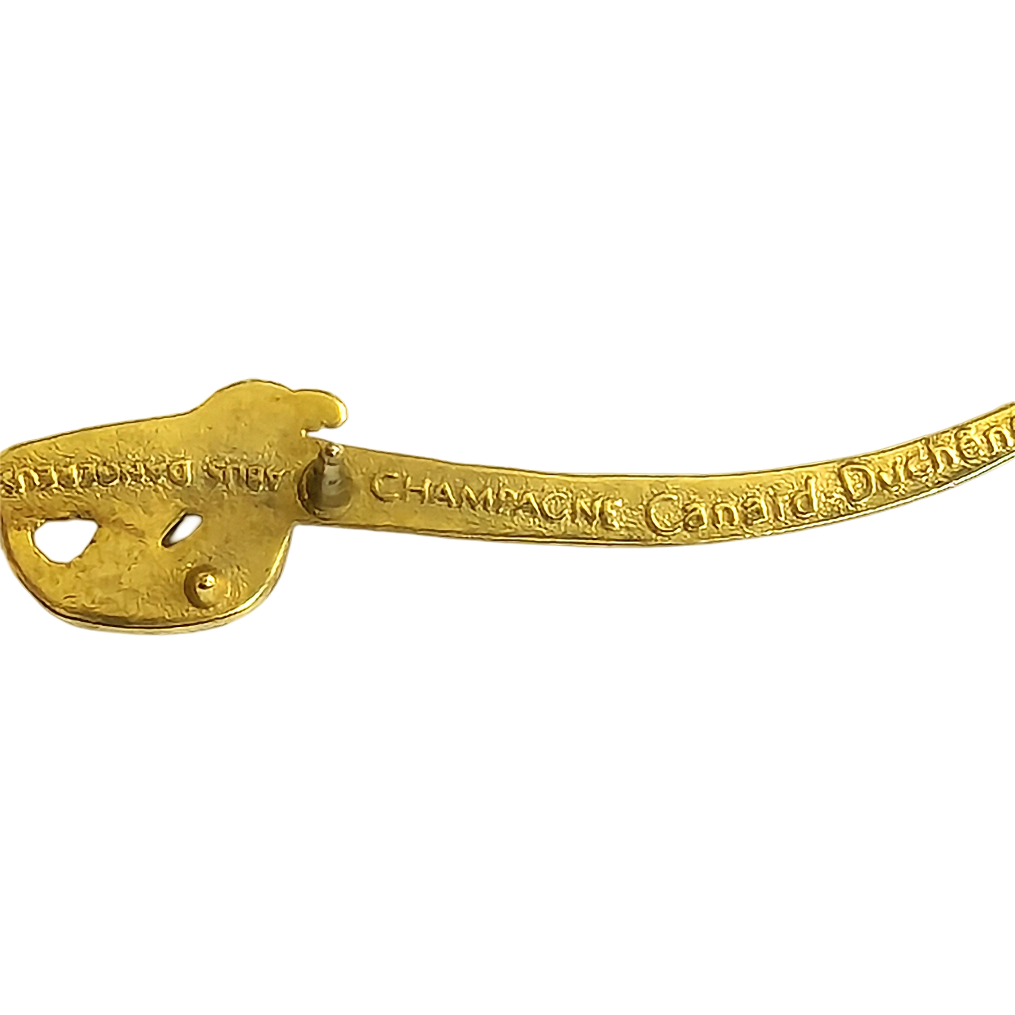 Este pin presenta un sable militar dorado con hoja curva y guarda de mano estilizada, acabado metálico.