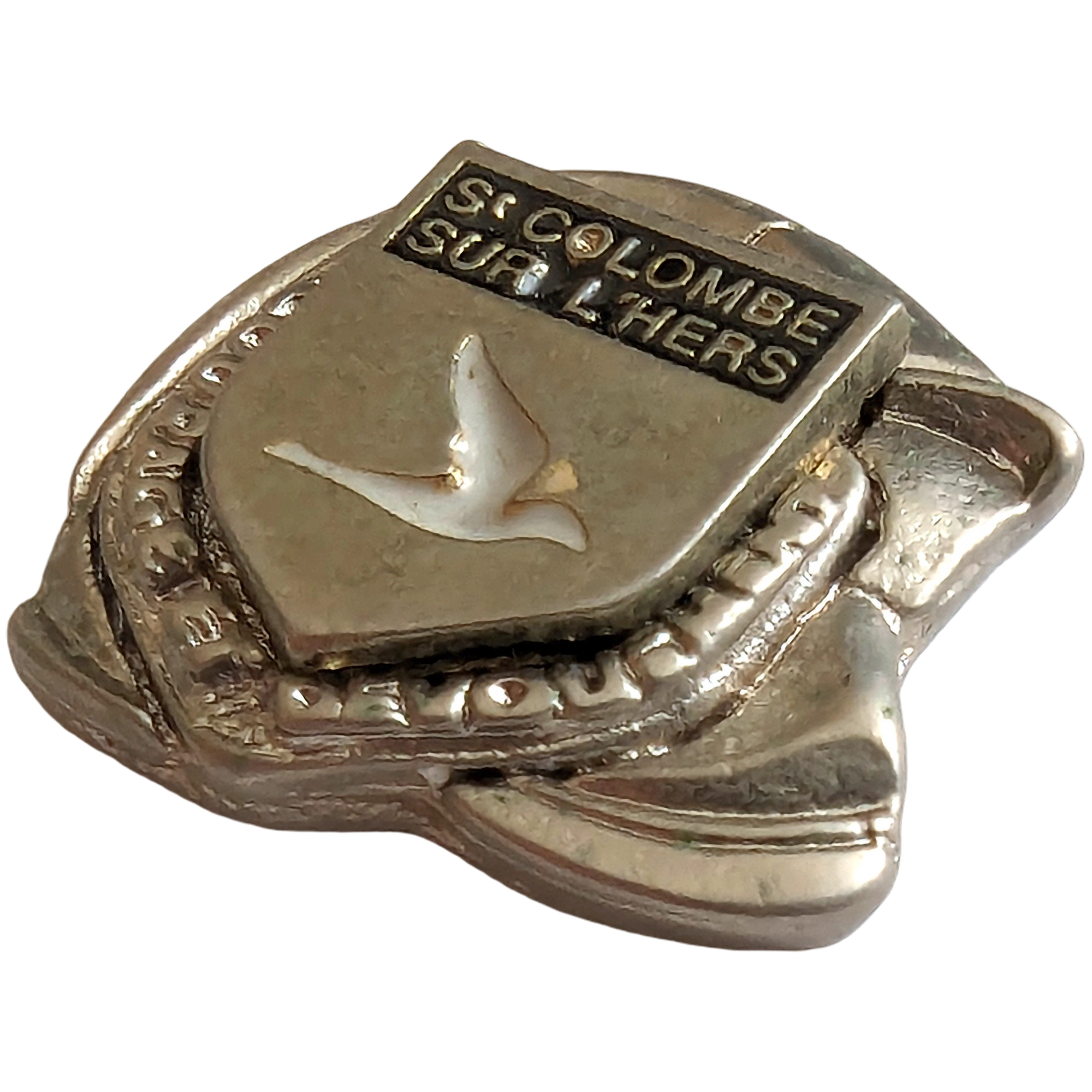 Este pin presenta el escudo de Saint‑Colombe‑sur‑l'Hers con paloma en vuelo y la inscripción ST COLOMBE SUR L'HERS.