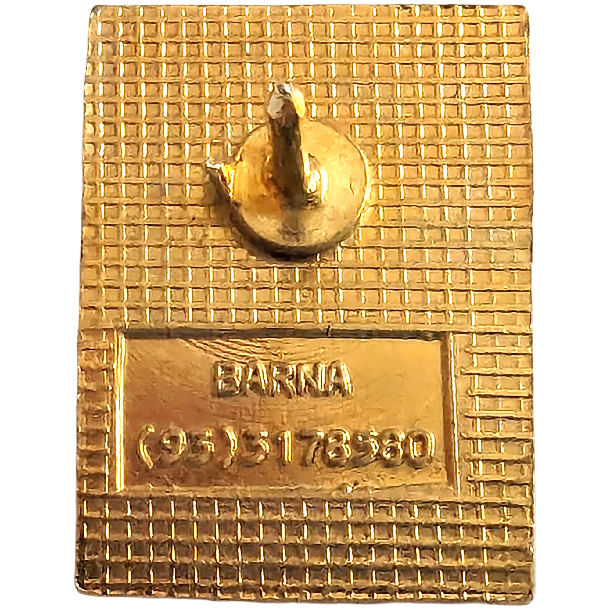 Este pin presenta maracas cruzadas rojo y verde sobre fondo dorado, con SALSA arriba y BAR en vertical.