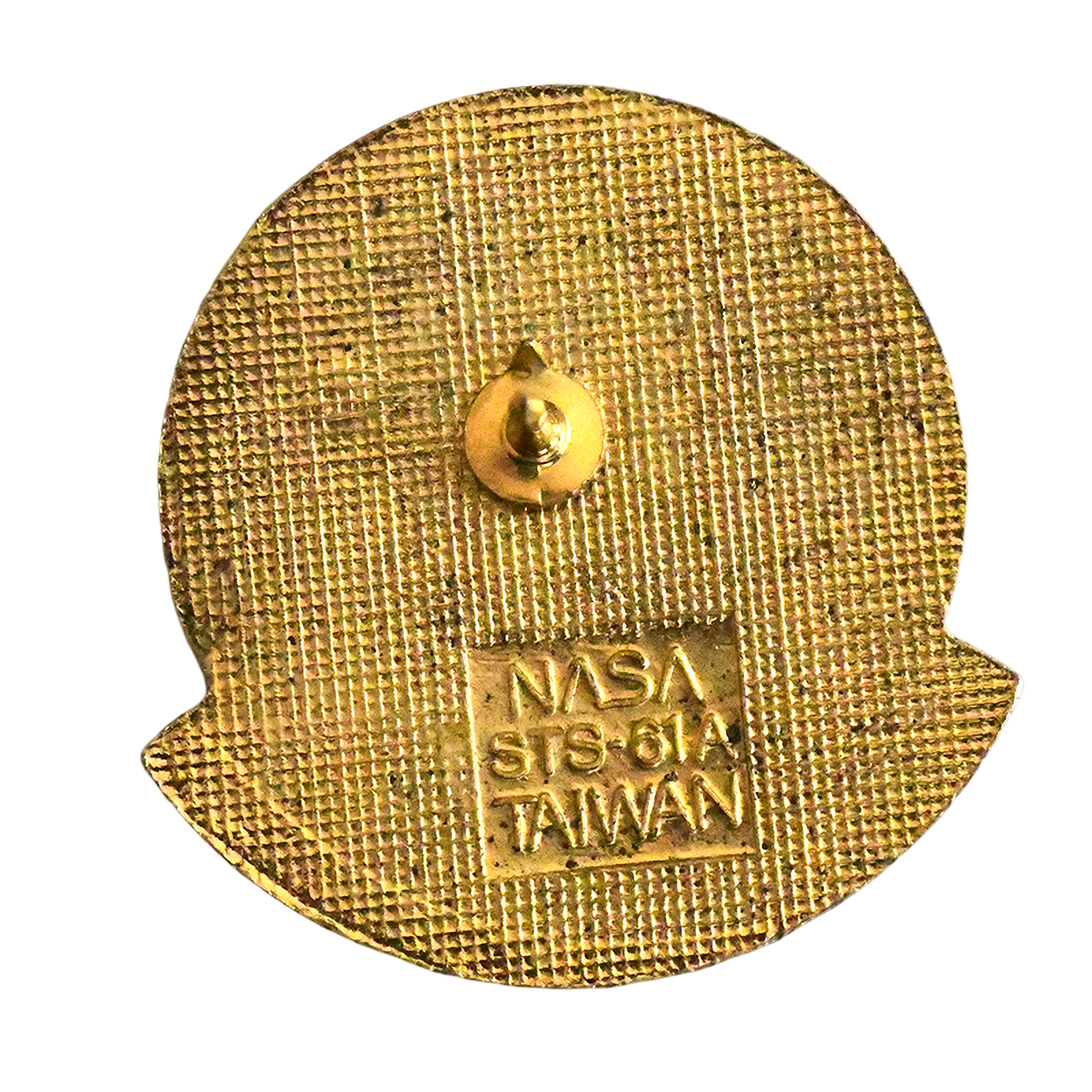 Este pin presenta el escudo de la misión Spacelab D1 con transbordador, globo, bandera EEUU y nombres de la tripulación.