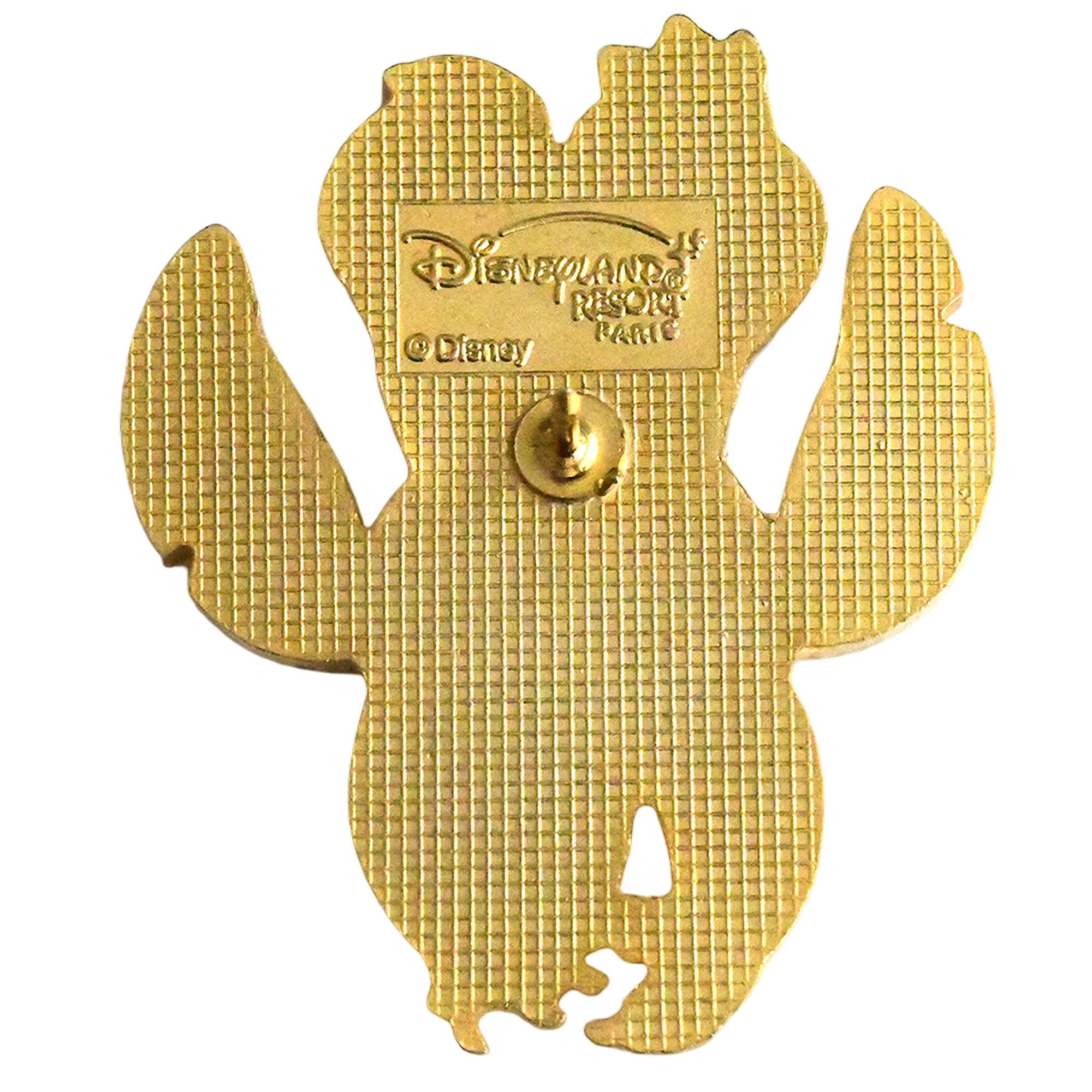 Este pin presenta a Stitch boca abajo, lengua rosada, ojos grandes, orejas moradas y contorno dorado. Disneyland Paris